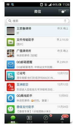 法律服务提供者在开设微信公众号时可以选择定位为订阅号或服务号。订阅号可每天推送一条信息,但微信用户所关注的所有订阅号都会集中在“订阅号”这一二级目录中,需要二次点击才能浏览具体的信息。服务号则每月只能推送一条信息,但服务号会直接置于微信板块的根目录中,如同普通联系人。