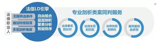 “法信”平台LD引擎的功能,就是在充分阅读理解裁判文书并自我学习进化的基础上,对裁判文书特定段落进行无限维度、多条件的自由组合和层层剖析;SP引擎则是利用大数据的聚类分析和智能排序功能,帮助法律人借助专业术语和要素在办理同类案件时同步实现法律事实的比对、法律关系的匹配、法律依据的校核和裁判结果的参照。