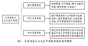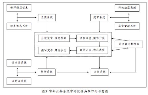 过程中,数据的共享具有基础性重要意义。数据本身的属性是静态的,如果没有良好的数据共享机制的存在,即便是拥有海量的数据也很难产生相应的数据价值,所以数据共享就如同一条不断滚动的传送带,盘活和带动整个司法信息化工作,实现不同信息系统内司法数据的自由流转和物尽其用,而缺乏数据共享和流动的信息化只能是徒有其表、流于形式的信息化。以我国法院系统为例。从目前法院系统司法信息化的建设情况来看,数据共享已经基本贯穿我国法院活动的全过程,各级法院在管辖、立案、审理、结案、执行和归档的各个阶段都已经具备信息化应用的条件和能力,并逐步形成了以审判管理系统、审判业务系统、审判监督系统为主体的信息系统;同时,以此三大主干系统为支撑,又分别形成了案件综合管理系统、科技法庭系统、案例数据库系统、司法公开系统等关键信息系统,有力地促进了我国司法的流程再造以及体制和机制性改革。