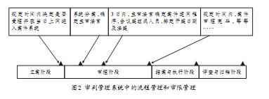 其一,基于审判管理过程的数据共享,有助于建立和完善审判管理系统。审判管理系统是我国最早进行司法信息化建设的领域,也是司法信息化的重点工程。审判管理系统主要是指审判流程管理的信息化系统,通过信息网络技术对传统的审判流程进行规范管理,采用流水管理模式,对从立案、分案、排期开庭、归档、结案统计等审判管理的全过程进行信息化处理,通过司法数据的网上采集和无障碍快速流转,实现法院内部各个相关部门的工作彻底融通。[3]通过该系统的运用,审判管理活动形成了一条线性的时间轴,办案流程可以在这条轴上按照相关程序法的要求被分割为若干审判阶段,我们还可以在这些特定阶段内设置若干重要的节点,实现以节点控制为中心的审限监控和管理。[4]审判流程管理系统已经在全国绝大多数法院进行了良好适用,通过流程管理方式的革新,大大提高了我国法院系统案件审理的效率,有效地解决了司法迟延的问题。在进行流程管理和审限管理之外,审判管理系统还具有案件监督督办、个案评查、绩效考核以及司法统计等重要职能,在此不再赘述。