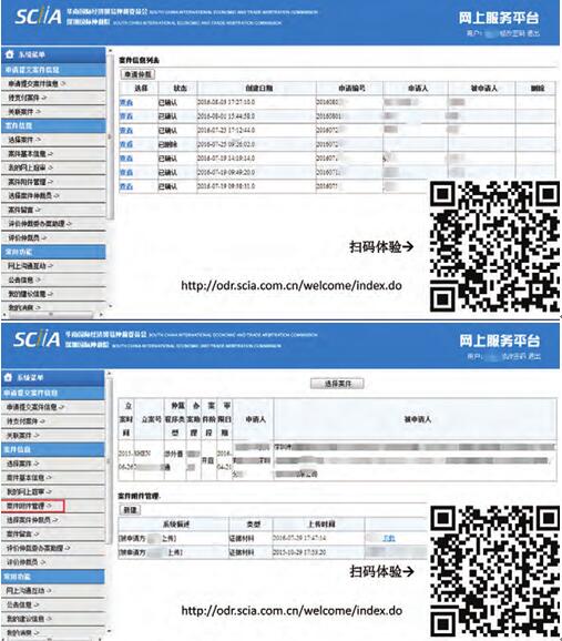 上面是深圳国际仲裁院的网上仲裁系统,你可以在这里申请仲裁、提交文件、交换文件、选择仲裁员、查询仲裁员简历信息等等,网上开庭,现在我们已经可以做到,但是我们要宣传,让更多的人到我们这里仲裁。